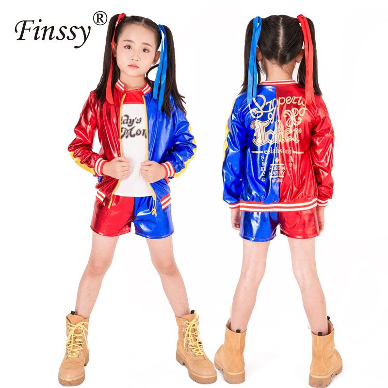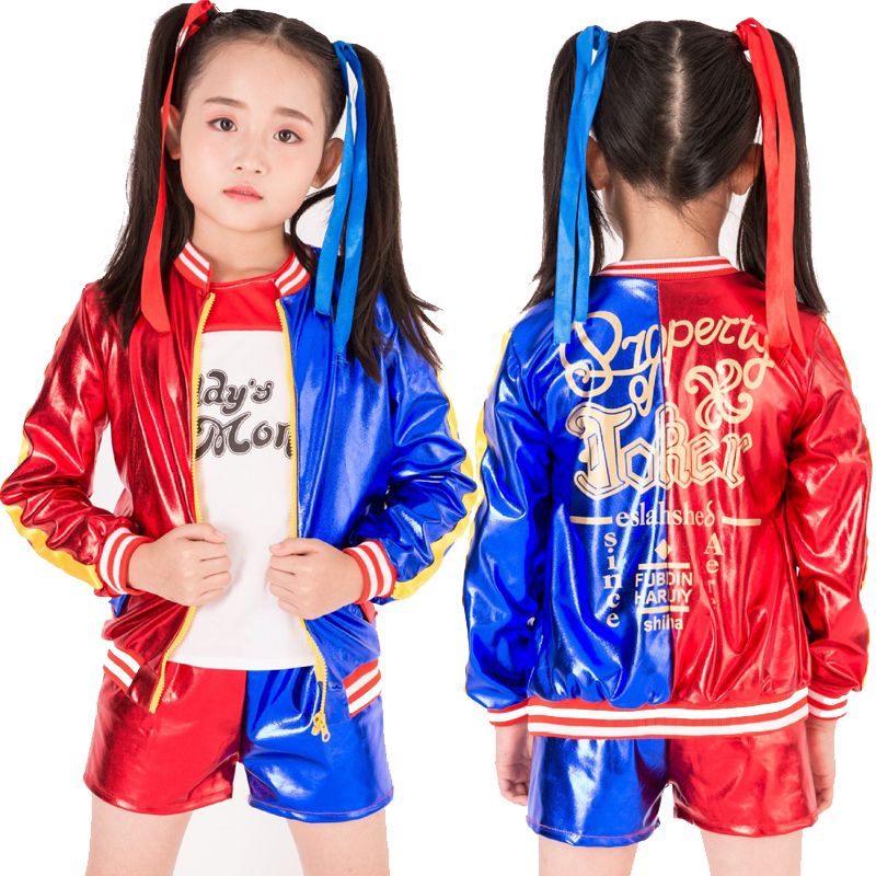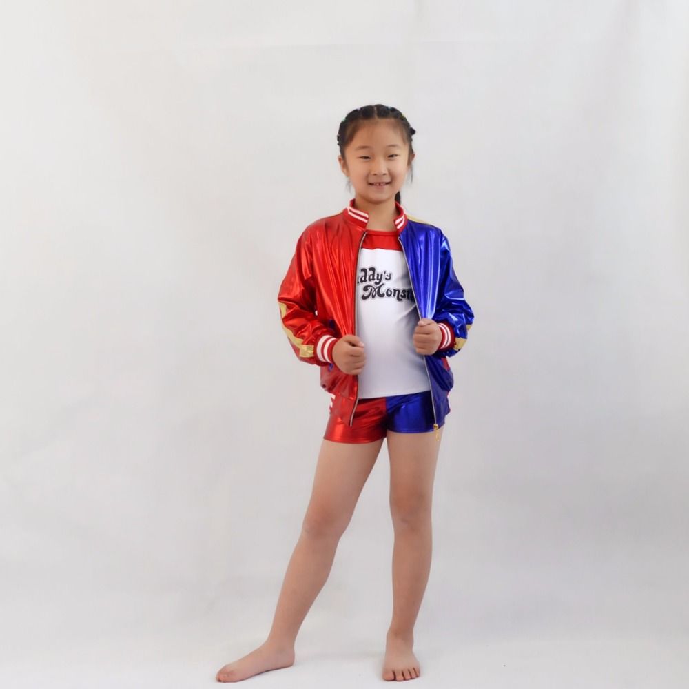 3pcs Harley Quinn Halloween Costume Jacket For Girls Kids Suicide