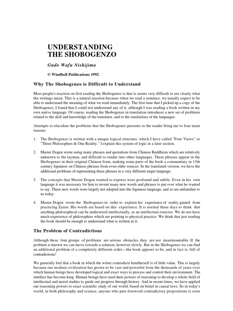 This is primarily why steve jobs was so fascinated with zen. Dogen fell ill in 1252. Complete english translations of shobogenzo in order of my personal preference nishijima gudo and chodo cross master dogens shobogenz0 4 vols.