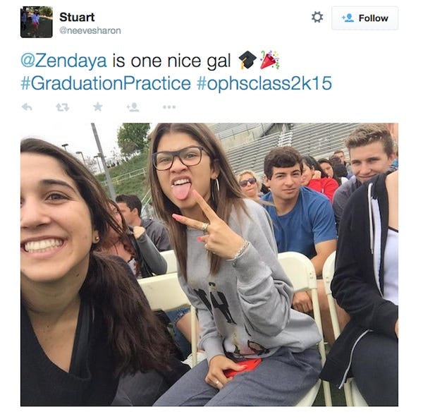 Im not crying you are she. Zendaya wearing leis and posing with a large 2015 sign after her high school graduation posted on her instagram on june 11 2015. Zendaya shared a post graduation picture of herself on instagram and included a lengthy caption writing shout out.
